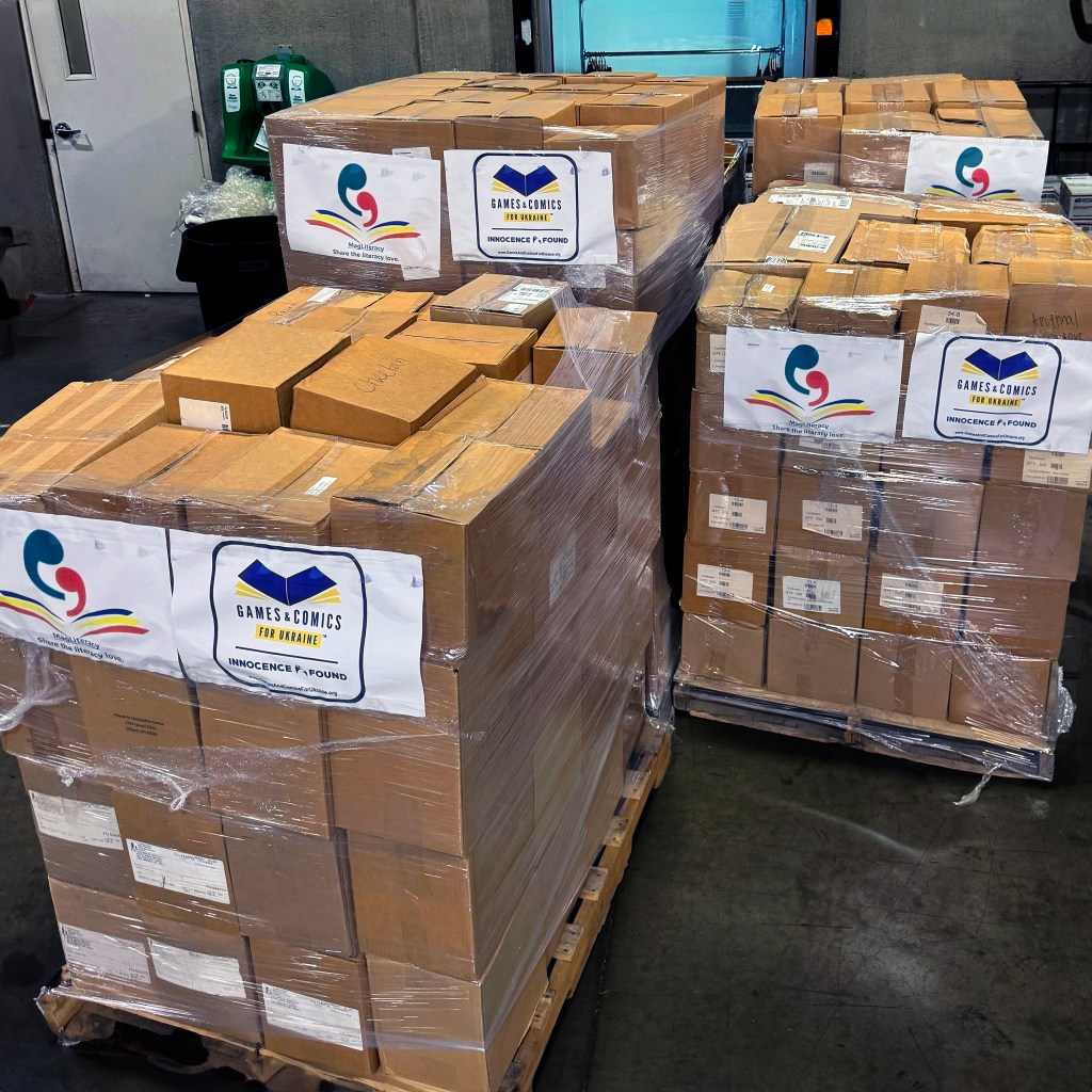With the ongoing war, there is a critical need for reading material, positive distraction, entertainment and any item that can support literacy. Not only is English now one of Ukraine’s official languages, but comics and games have a unique ability to draw in readers and participants. Comics and games are valuable for education as well as entertainment and diversion.
